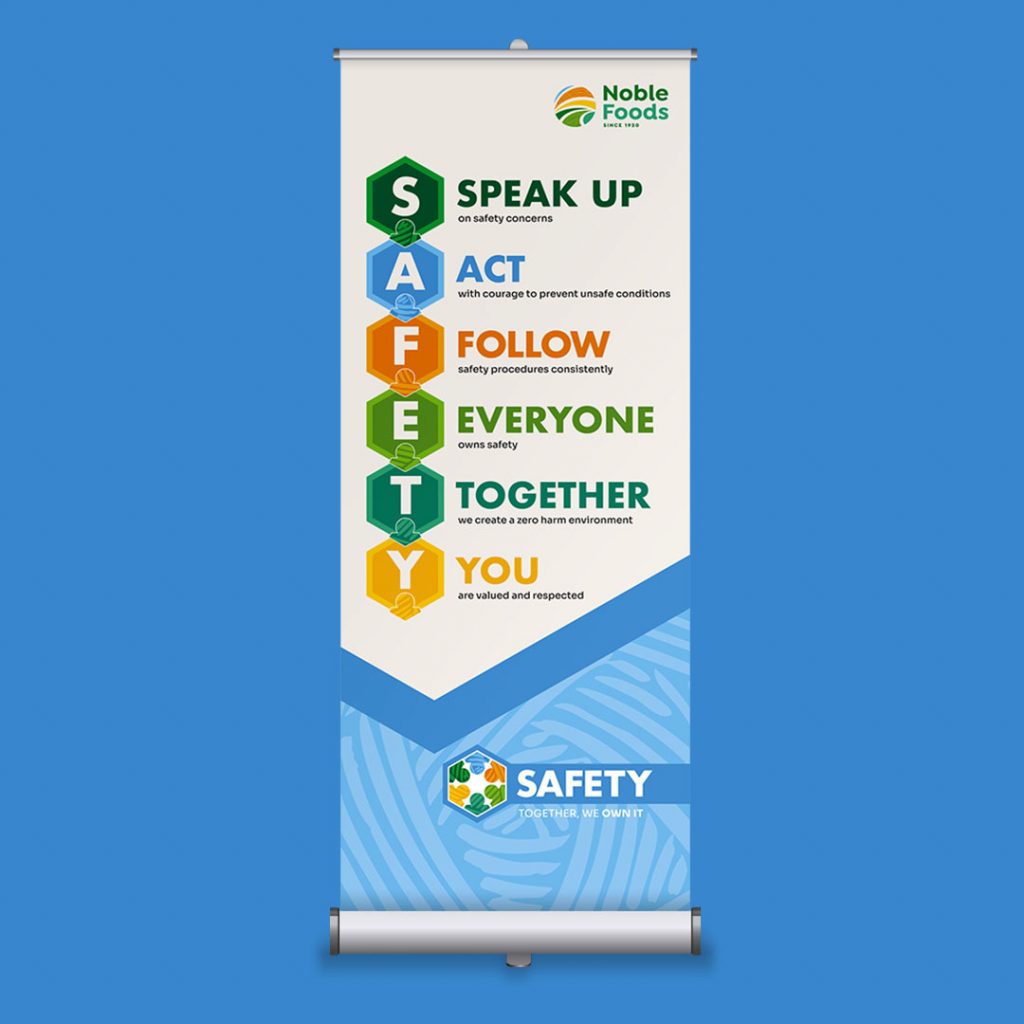 Noble Foods, a leading supplier of fresh food brands to major retailers and consumers, launched an internal campaign to communicate their Health & Safety strategy and culture. The business needed a clear campaign identity and a suite of supporting materials to engage colleagues across the organisation.