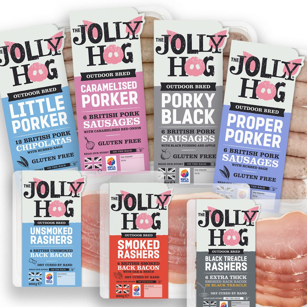 The Jolly Hog is an independent, family run business making great tasting outdoor bred sausage and bacon products for the last 15 years. We’ve been working with The Jolly Hog brand since 2016, helping to develop their packaging with the addition of new products. More recently the business has grown rapidly with new product development, where in this instance we were briefed to create the packaging design for their new range of Slow Cook products.